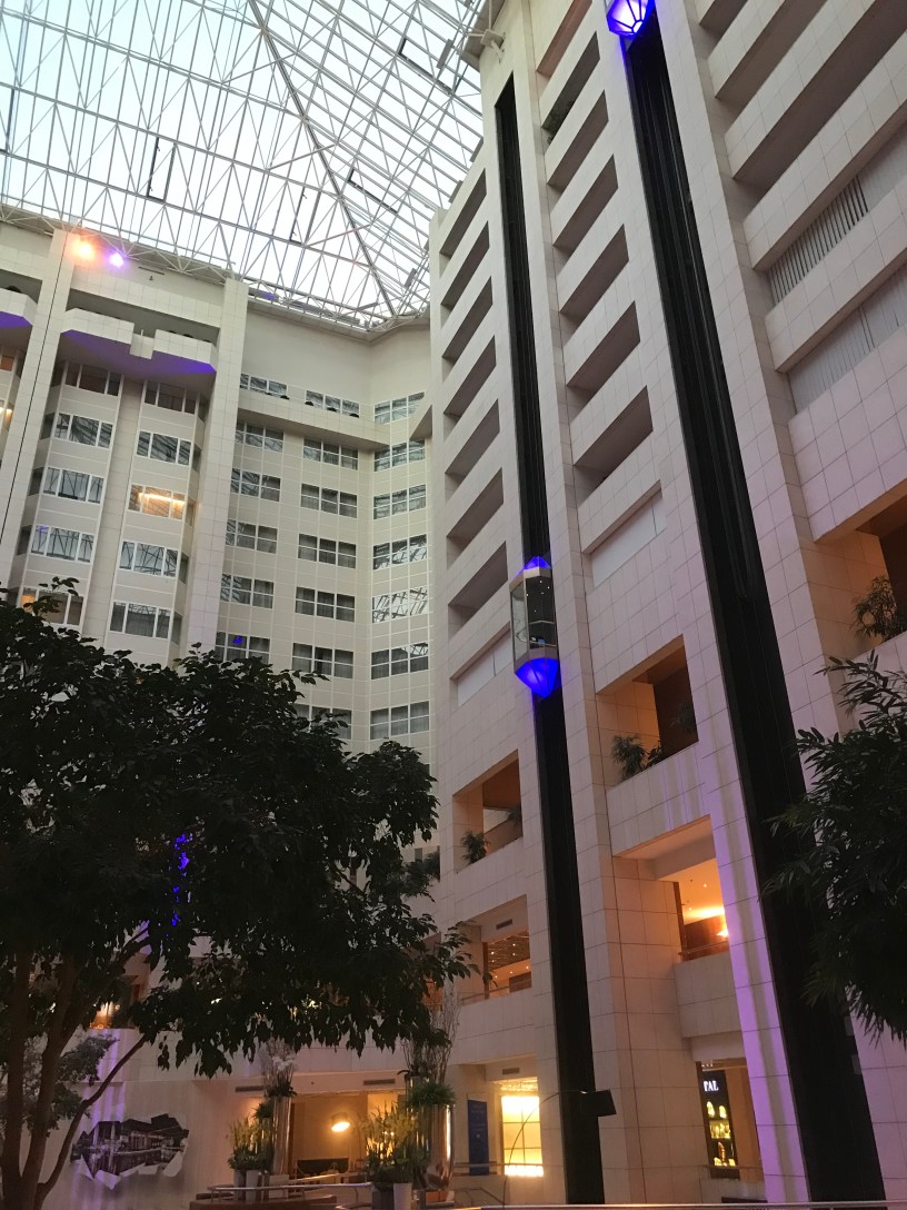 This is the side entrance. I’d received an email to say I could check in on the Executive Floor (the 8th Floor). The elevators were pretty interesting – a touch screen asks where you want to go and then advises which elevator (A-F) will take you there. They worked perfectly and we never had the elevator stop at unwanted floors during our visit.