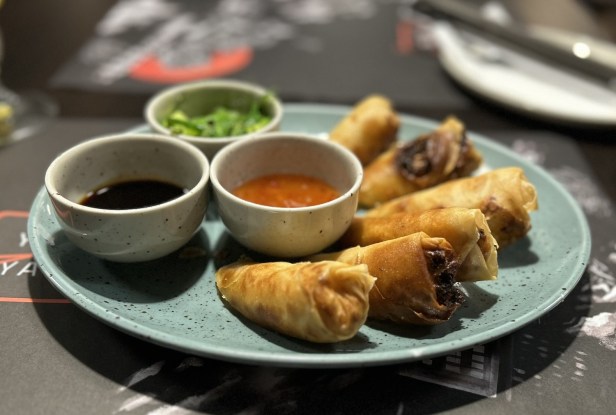 The spring rolls with chicken (155 Kč) were well-presented, but didn’t contain much chicken.