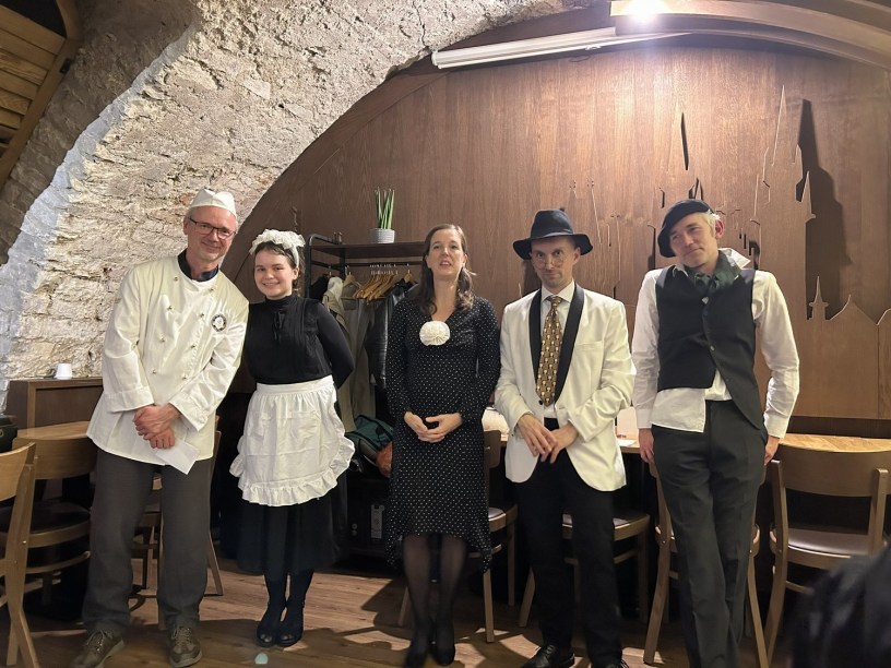 We assembled in the cellar of the restaurant, where tables had been arranged for both guests and actors. It was explained to us that the setting was a small Czech hotel called the Old Mill, during the period between the first and second world wars.