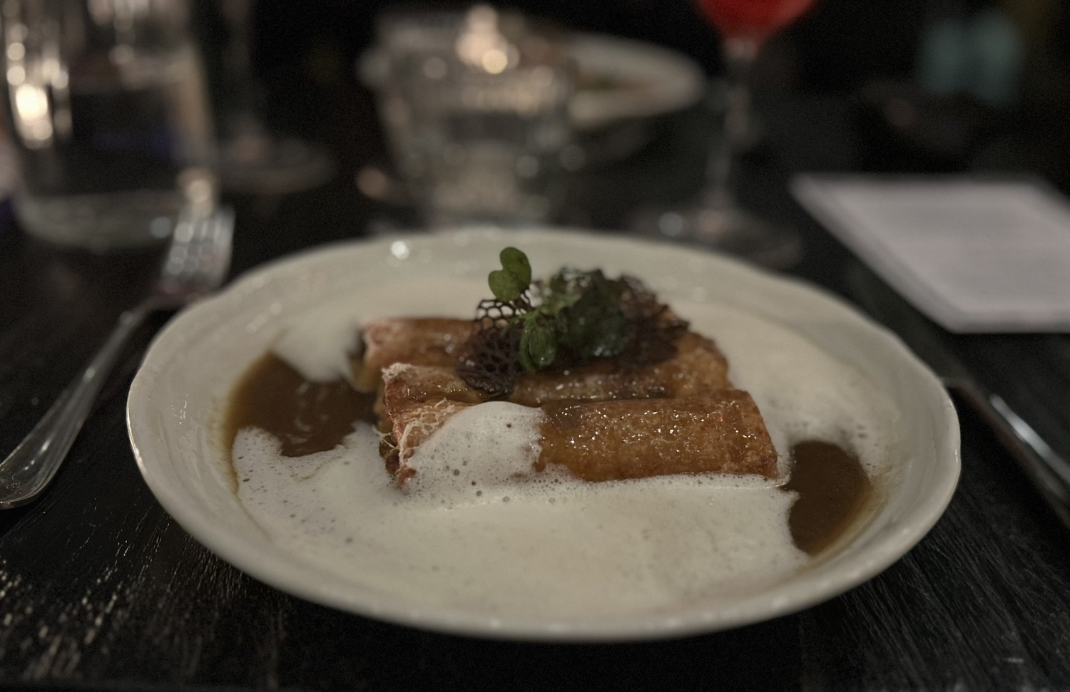 This wasn’t a traditional pasta cannelloni. It tasted like a crêpe or pastry wrap, I also couldn’t taste the foie gras, but was still a great dish and the sauce amazing.