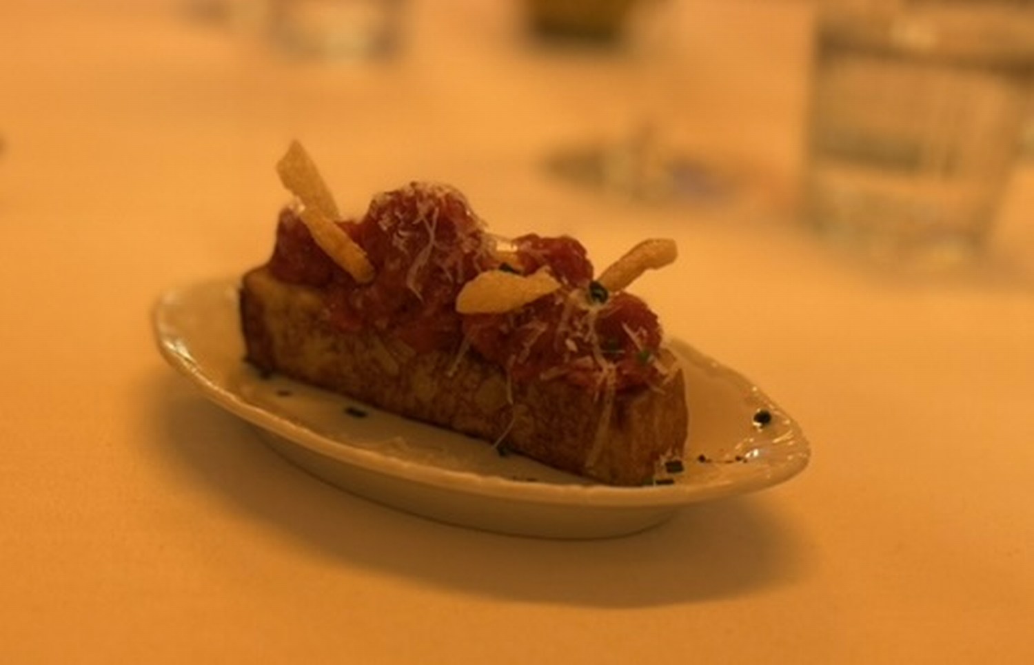 The amuse bouche was a delicious beef tartare on brioche. This dish was explained to us and was also a generous size for an amuse bouche.